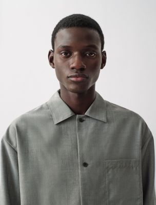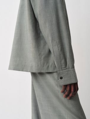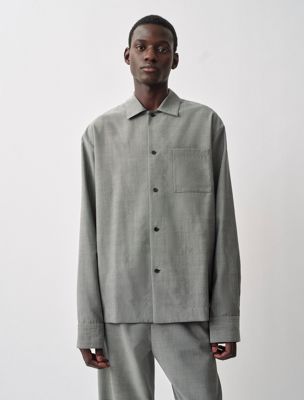 A relaxed pajama shirt tailored in 100% mélange effect wool with a lightweight drape.