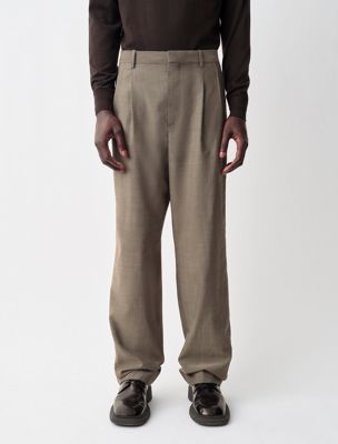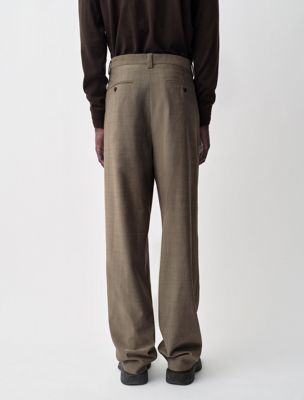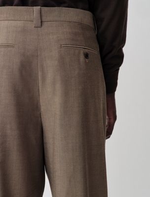 Double-pleat trousers with a dropped rise and a subtle wide leg. Crafted from 100% lightweight mélange effect wool.