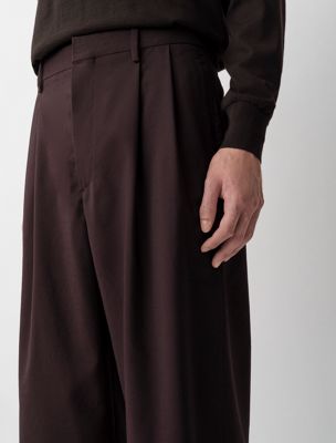 Double-pleat trousers with a dropped rise and a subtle wide leg. Crafted from 100% lightweight mélange effect wool.