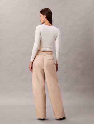 Cotton Twill Belted Trousers