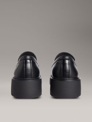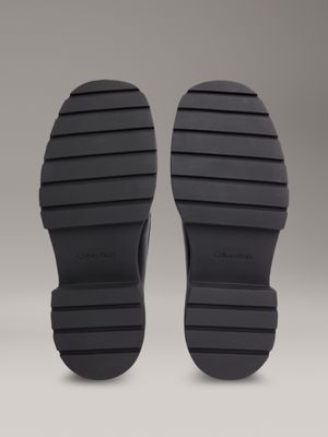 Crafted from smooth leather, these combat boot-inspired loafers feature an apron toe and a flexible, lightweight platform lug sole for added comfort. Finished with CK monogram hardware for a signature touch.