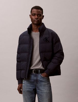 Stay ahead of the elements with Calvin Klein’s men's outerwear collection – where style meets practicality. Innovative materials. Minimalist details. Big pockets to fit all your possessions. Calvin Klein men’s coats and jackets are made to make a statement. Add a touch of vintage cool to your wardrobe with a classic denim jacket, perfect for pairing with mid-rise jeans for a casual, effortless look. Discover the great outdoors with a windbreaker that protects you from wind and rain. Or stay warm with our mid-weight puffer jackets that are both functional and stylish. Wear them with slim-fit joggers and trainers for an urban look that's sure to impress. Calvin Klein’s men’s jackets feature recycled fabrics and filling materials, so you can shop more sustainably. Calvin Klein men's coats and jackets. Layer up in style.