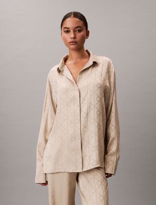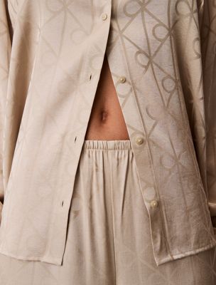 Indulge in the luxurious feel of satin nightwear, featuring the brand new Calvin Klein all-over logo motif for a signature touch.