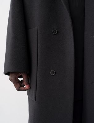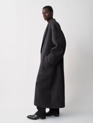 A deconstructed robe coat, featuring a relaxed silhouette crafted from a wool and cashmere blend for a soft yet structured hand.