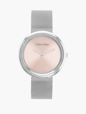 • Calvin Klein-logostyling op de wijzerplaat, sluiting en kast