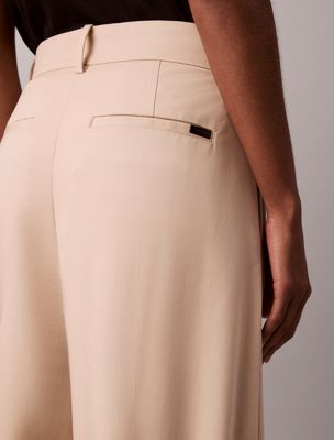 Geplooide stretch chinobroek met wijde pijpen