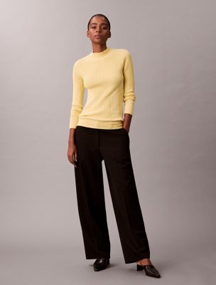 Geribbelde wijde top met hooggesloten hals