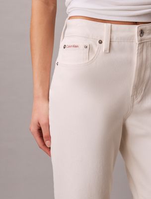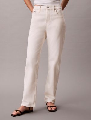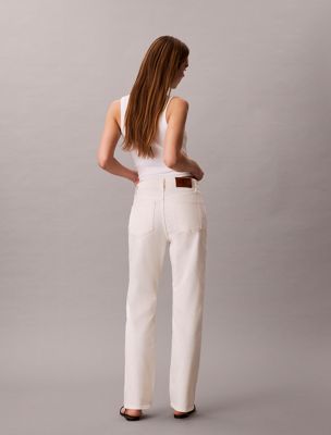 • hoge taille, straight fit: valt in de taille, rechte pijp