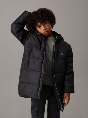 Maak kennis met de Calvin Klein-collectie jassen en jacks voor jongens. Futuristisch. Functioneel. Modebewust. De Calvin Klein-bovenkleding voor jongens is ontworpen om jonge geesten te stimuleren. Help hem de elementen met vertrouwen te trotseren in een windjack voor jongens, dat bescherming biedt tegen de wind. Voor een stoere maar verfijnde look geef je hem een denim jack als extra laag, perfect voor avonturen in de buitenlucht. Maak de outfit compleet met een rugzak, jeans en laarzen. Of upgrade elk ensemble met een bodywarmer voor jongens, die warmte combineert met bewegingsvrijheid. Mix en match CK-jongenskleding voor moeiteloos coole outfits die zelfvertrouwen en individualiteit uitstralen. De jongensjassen en -jacks van Calvin Klein zijn gemaakt met gerecyclede stoffen en zijn ontworpen voor de toekomst. Want elk avontuur begint met de juiste uitrusting. Calvin Klein-bovenkleding voor jongens. Voor de reis die voor ons ligt.