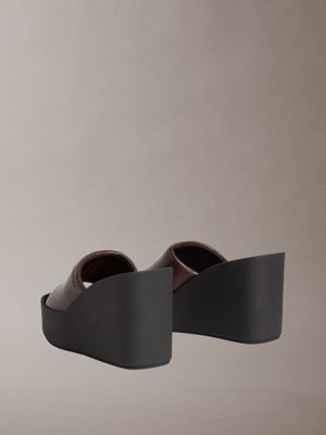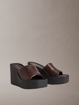 Melia - Leren plateausandalen met sleehak
