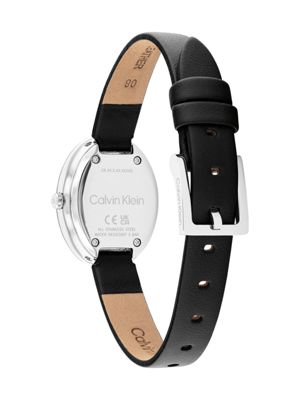 • Calvin Klein-merken op de wijzerplaat en gesp
