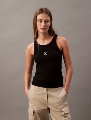Geribbelde slim tanktop met monogram