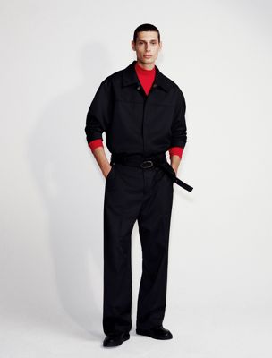 Calvin Luo voor Calvin Klein. Geïnspireerd op het nieuwe jaar van de slang. Moderne kijk op een traditionele viering, van dag tot nacht. Dit tailored jack van gemengd polyester wol gabardine heeft een custom draaisluiting aan de kraag.