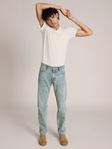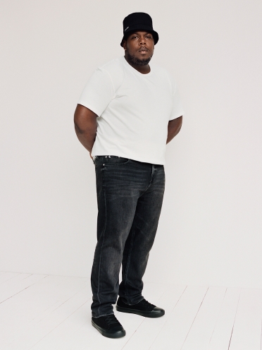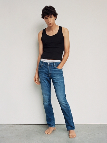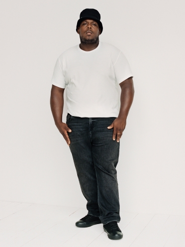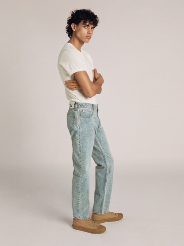 Een moderne versie van de tapered fit. Ontworpen om onder de taille te vallen. Relaxed rond de heup met een subtiele taps toelopende pijp.