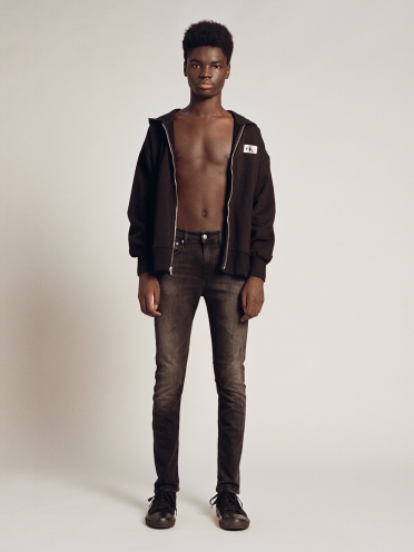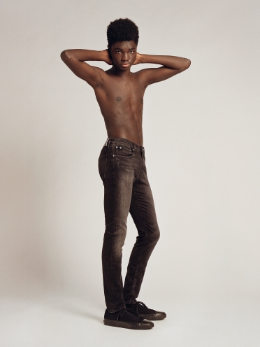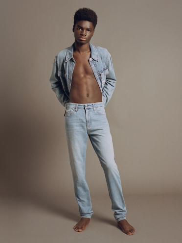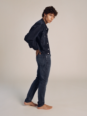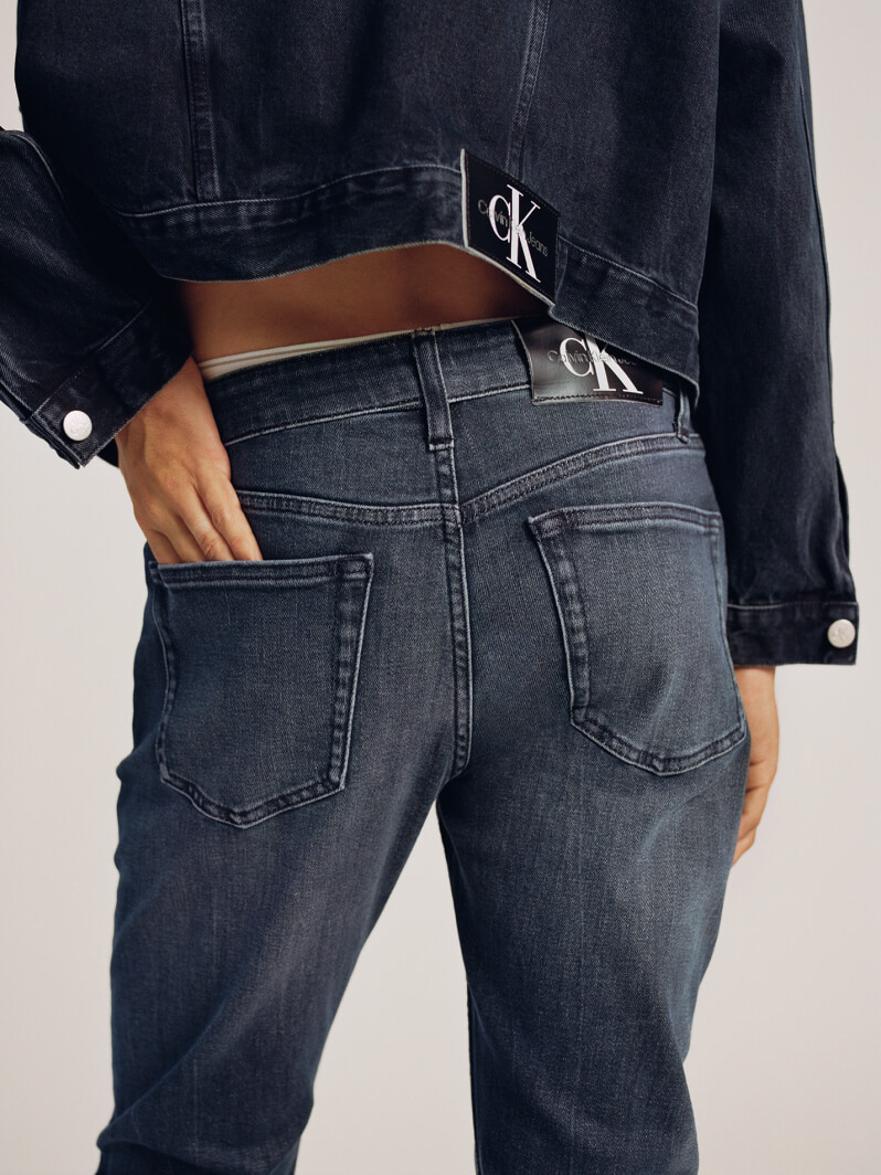 Onze meest universele fit. Ontworpen om net onder de taille te vallen. Smal bij de heup en dijbeen. Taps toelopende fit met een smalle pijp.