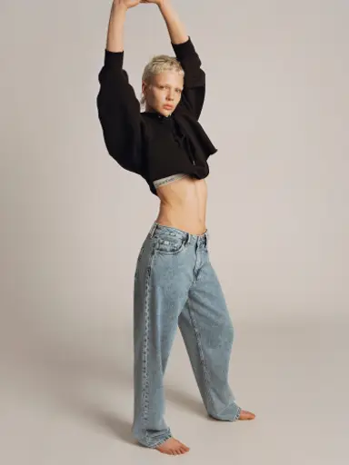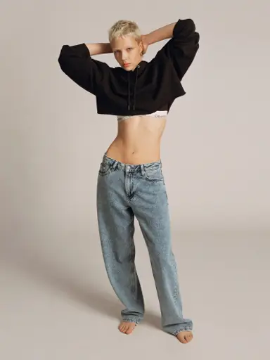 Geïnspireerd door de iconische 90s fits. Ontworpen om op de taille te vallen. Relaxed rond de heup en dijbeen met taps toelopende pijp.