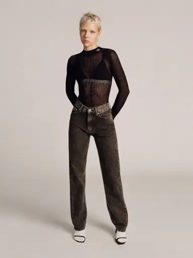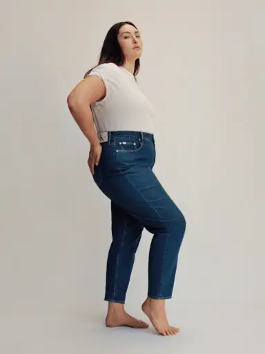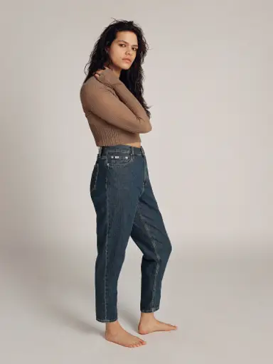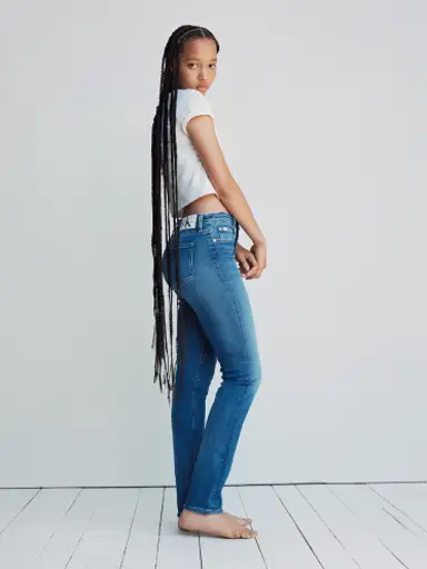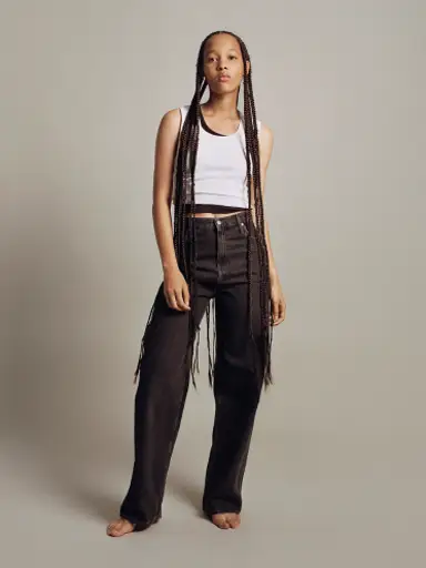 Geïnspireerd door de iconische 90s fits. Ontworpen om op de taille te vallen. Smal rond de heup en dijbeen met taps toelopende pijp.