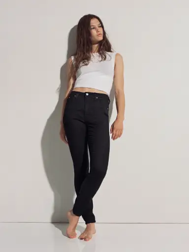 De dagelijkse skinny jeans. Ontworpen om boven de taille te vallen met stretch in de tailleband voor een soepele fit.